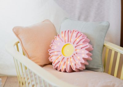 Lampada fiore, un elegante e graziosa margherita. La puoi personalizzare scegliendo il colore preferito della tua bambina! La compagna perfetta per la favola della buona notte!