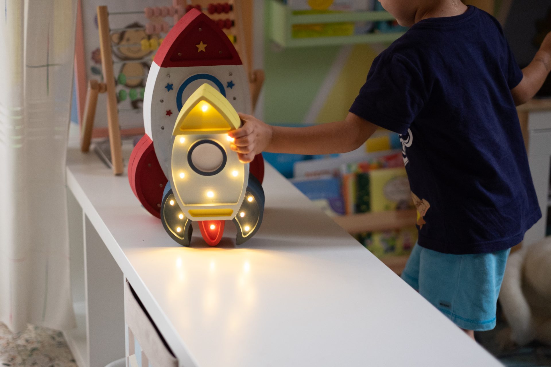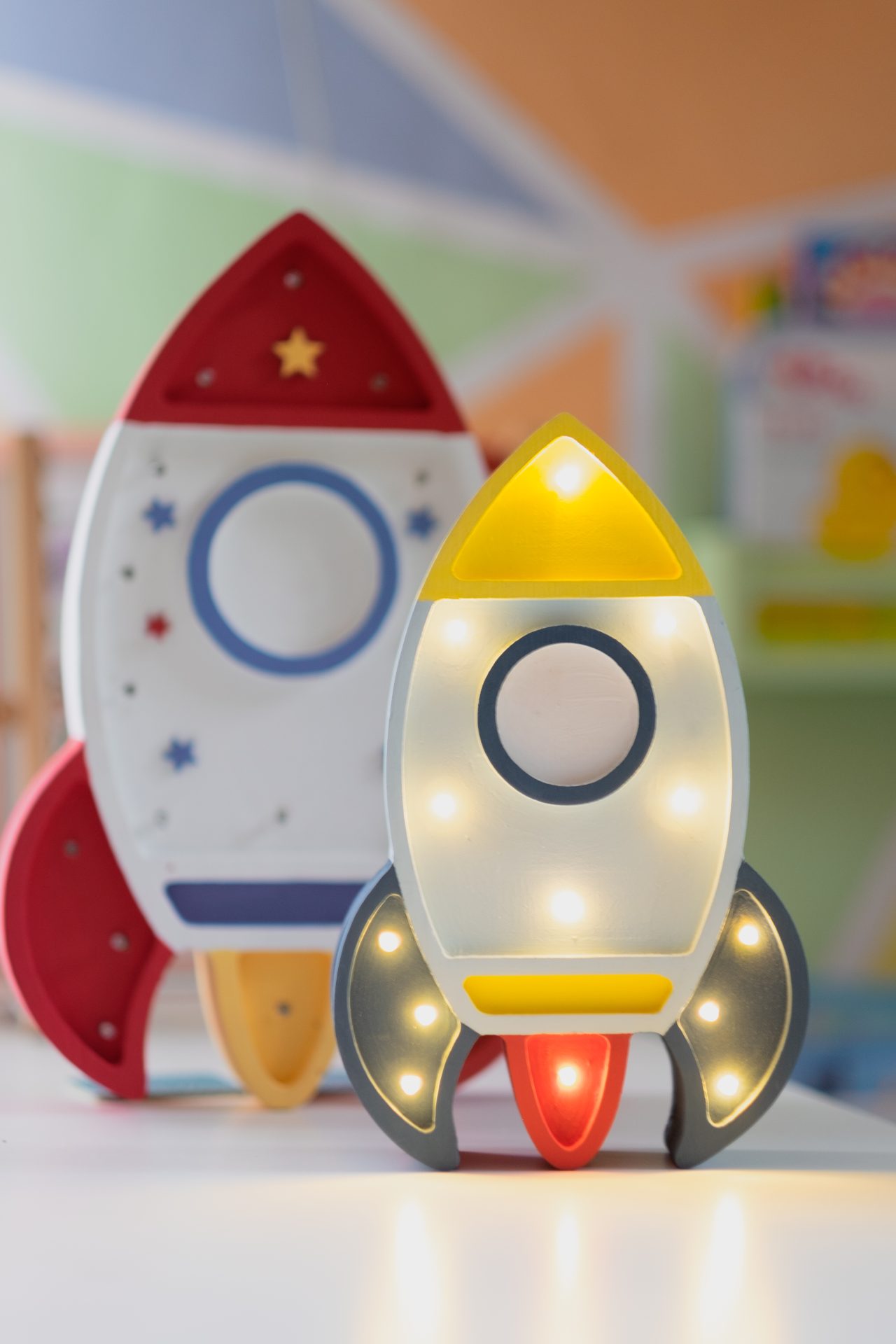 - Nasce il razzo Gey nella versione media grandezza, per le esigenze di tutti gli spazi, con le sue dimensioni ridotte è l’ ideale per ogni cameretta, le lampada de Il cerchio di PePu sono prodotte nel mio piccolo laboratorio in Abruzzo. L’intero processo della loro creazione, a partire dal lavoro in legno di abete, alla levigatura, per finire con l’incollaggio di piccoli elementi e la verniciatura con vernici certificate per bambini, è per lo più un lavoro manuale, ma non è solo un bellissimo oggetto di uso quotidiano ma anche una piccola opera d’arte che durerà per tutta l’infanzia e rimarrà in famiglia per generazioni.